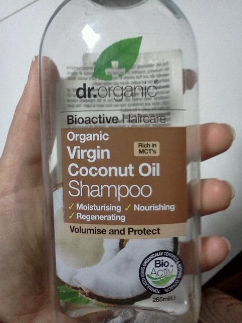 O primeiro produto é o shampoo de côco de Dr. Organic. Bem sei que não é o champo mais apropriado para o meu tipo de cabelo, que é seco e encaracolado, mas mesmo num cabelo mais oleoso não parece resultar. Deixa o cabelo tipo palha, e mesmo colocando o condicionador a seguir continua aspero e seco.